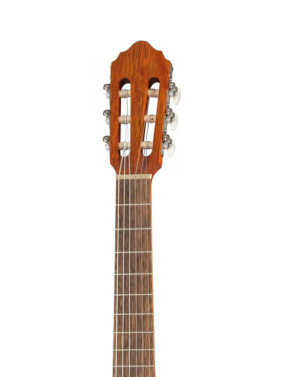 Уменьшенный корпус делает гитару идеальной для путешествий, обеспечивая при этом громкое звучание, которое превосходит ожидания от её компактного размера. Кроме того, размер 3/4 идеально подходит для начинающих игроков и игроков с небольшим телосложением, его глубина корпуса составляет 82-87 мм.